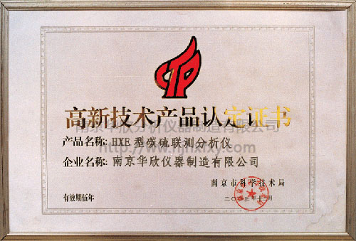 碳硫分析儀高新技術(shù)產(chǎn)品認(rèn)定證書