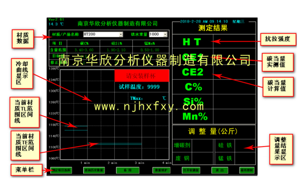 1、測量范圍:CE:2.50~4.80%,C%:2.30~4.20%,Si%:0.60~3.80%,Mn%: 0.10~1.40%,,抗拉強度:100~400MPa;